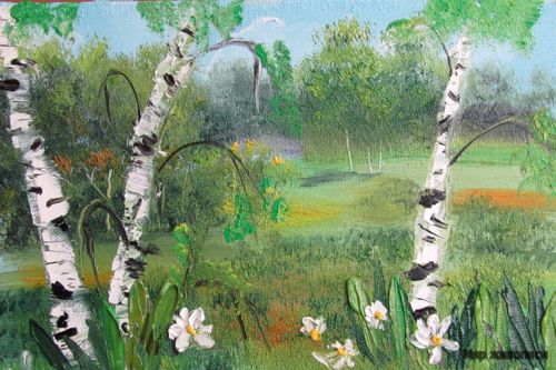 Левченко Ярослав (7лет) "Березовая роща" м/х 20х30